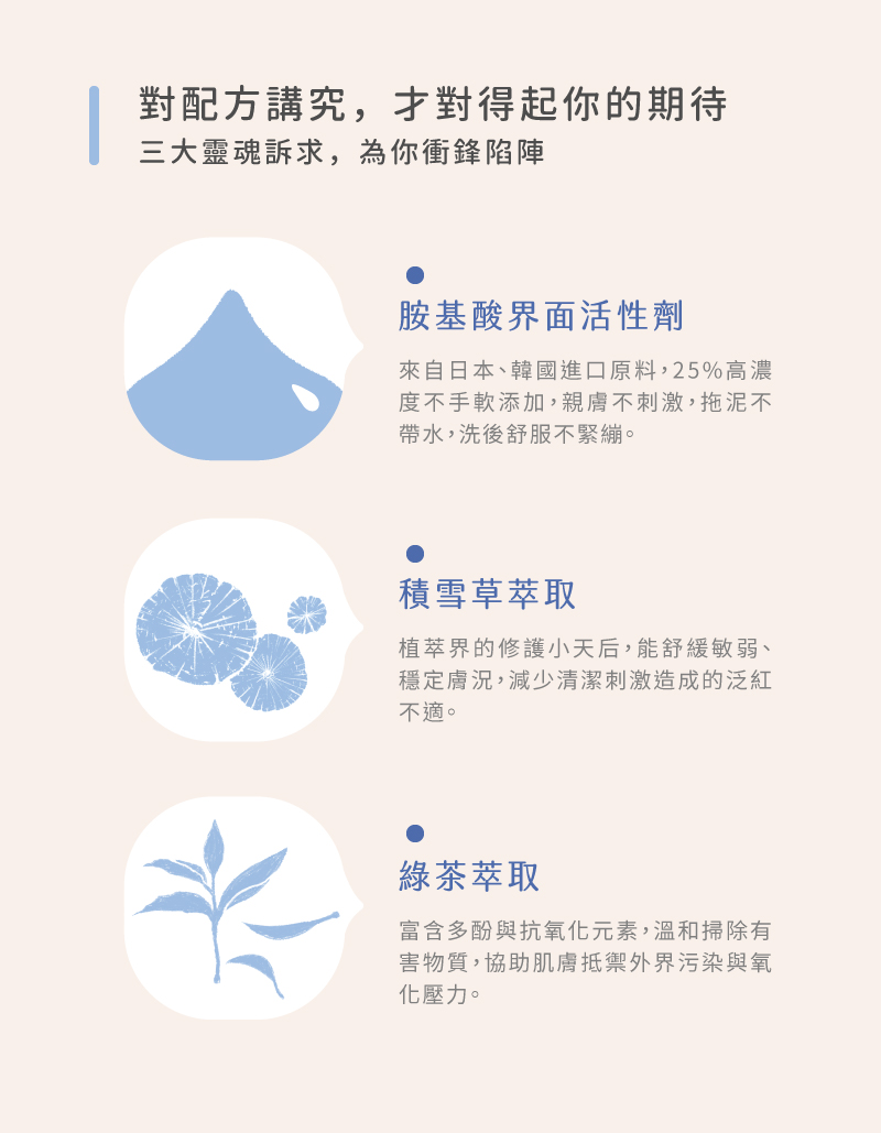 A:洗完的感受很舒服,不會過度洗淨造成乾澀,也不會過度添加造成洗不掉的滑感。簡單來說,就是回歸素顏的純淨清透感。