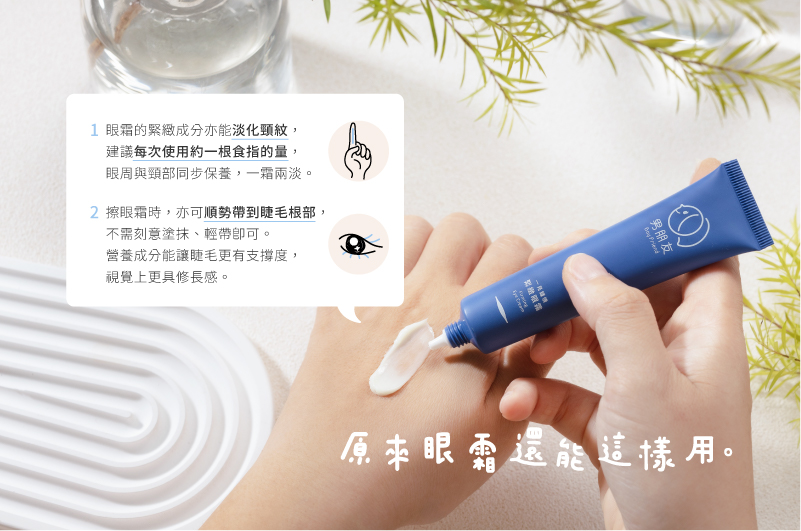 A:隨時都可以!現代人每天划手機的時間太高,眼睛高度使用的狀況下,眼周的肌肉跟皮膚也承受高度的緊繃,使用眼霜除了保養眼周皮膚,也可以藉由按摩的過程放鬆眼周肌,促進循環,也能延緩細紋的產生。